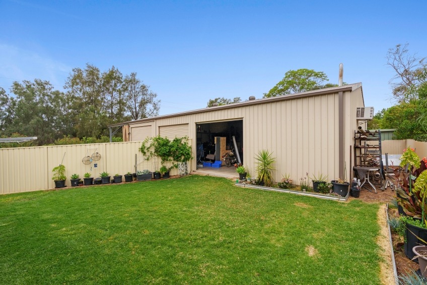 - And here's the best part, an 18m x 7m powered shed with remote roller doors, separate bathroom and open, skillion additions high enough to comfortably house caravans!